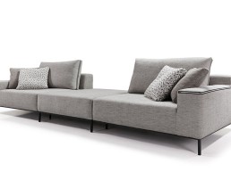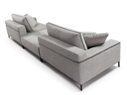 Su estructura se construye con madera maciza de pino gallego, garantizando una solidez superior frente a opciones económicas. La durabilidad del asiento se apoya en sistemas de muelles de acero o cinchas italianas de alta resistencia, que se complementan con rellenos de espuma HR de 35kg/m³. Para un confort máximo, añade una capa superior con «efecto nube» y tapicerías que superan los 65.000 ciclos Martindale. Los acabados incluyen costuras dobles y patas de diseño aptas para robots aspiradores, uniendo estilo y practicidad. Este sofá modular gris, con texturas de tendencia, se posiciona como el eje central de cualquier salón moderno y sofisticado.
