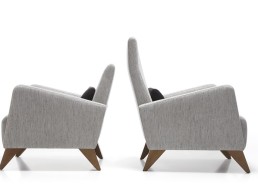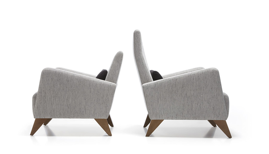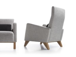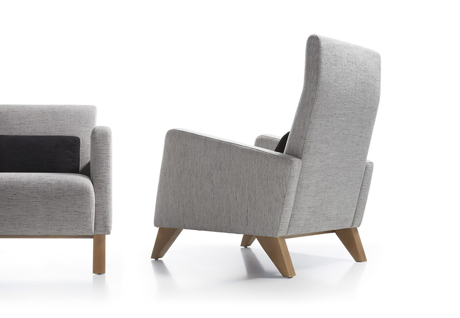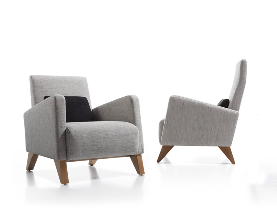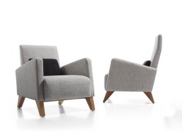 Butaca de líneas contemporáneas y diseño envolvente, tapizada en tejido de tono neutro y sostenida por elegantes patas de madera. Su estructura equilibrada ofrece comodidad y estilo, adaptándose con facilidad a espacios modernos y acogedores. Fabricadas en dos alturas.