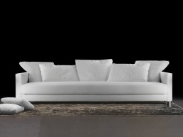 Básico sofá donde se elimina todo lo superfluo y se deja solamente lo más cúbico del diseño. Con sus dos versiones de respaldo en pluma y fibra y con un asiento tanto en colchoneta como en asientos individuales, Thaiss permite ser emplazado en diferentes ambientes.
