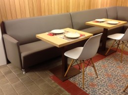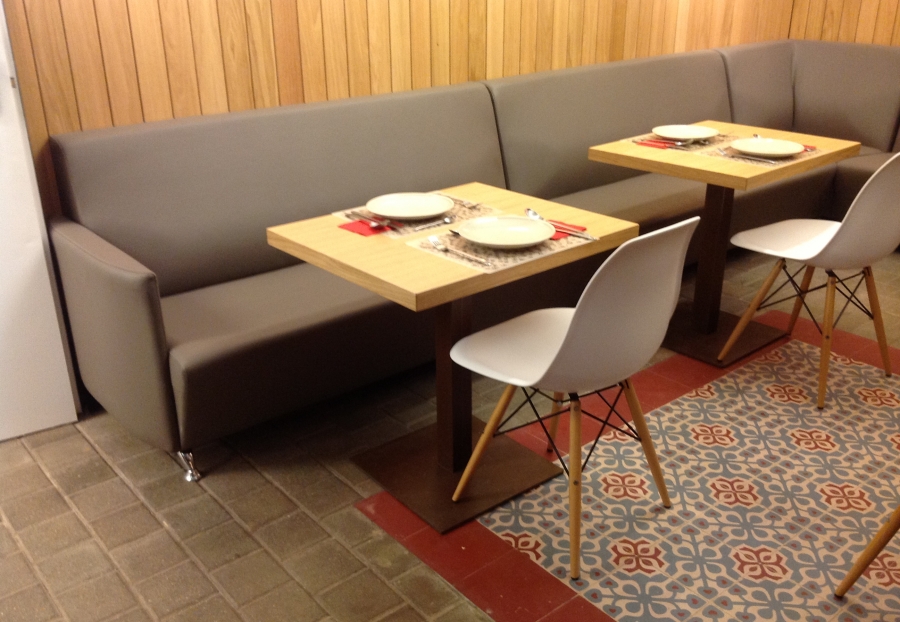 Unas bancadas encajadas a todo el perímetro de la pared del restaurante.