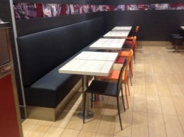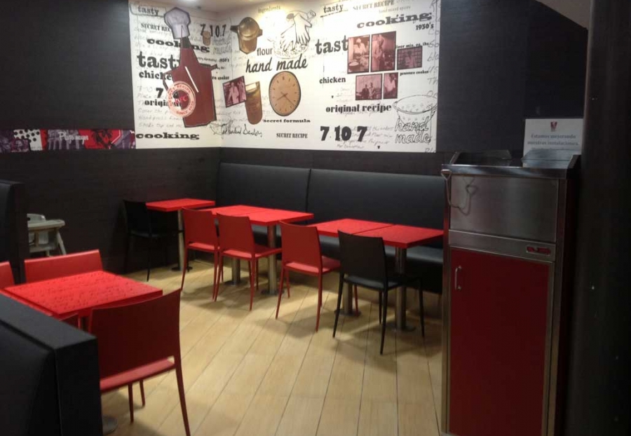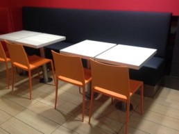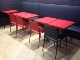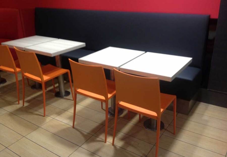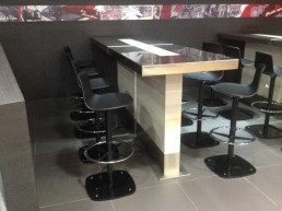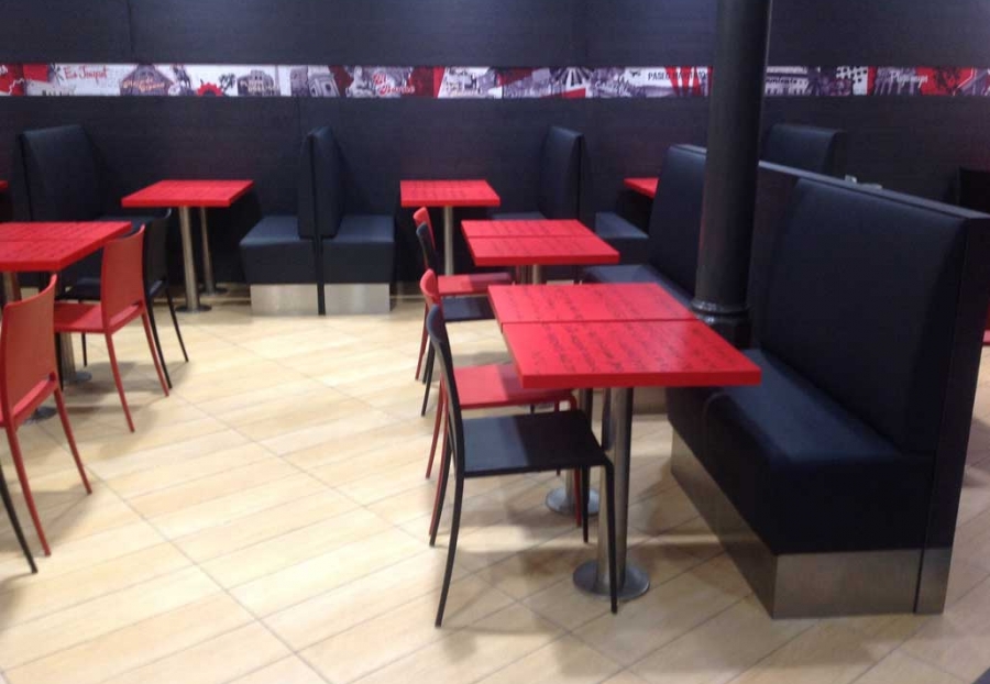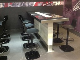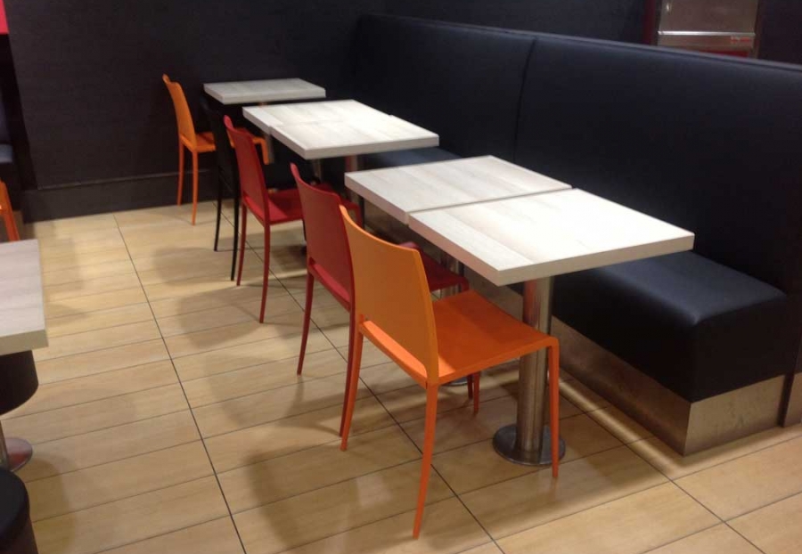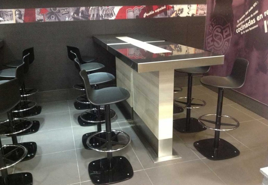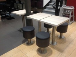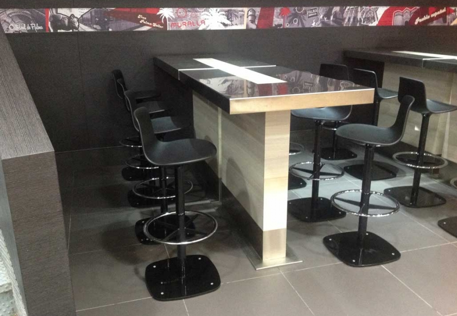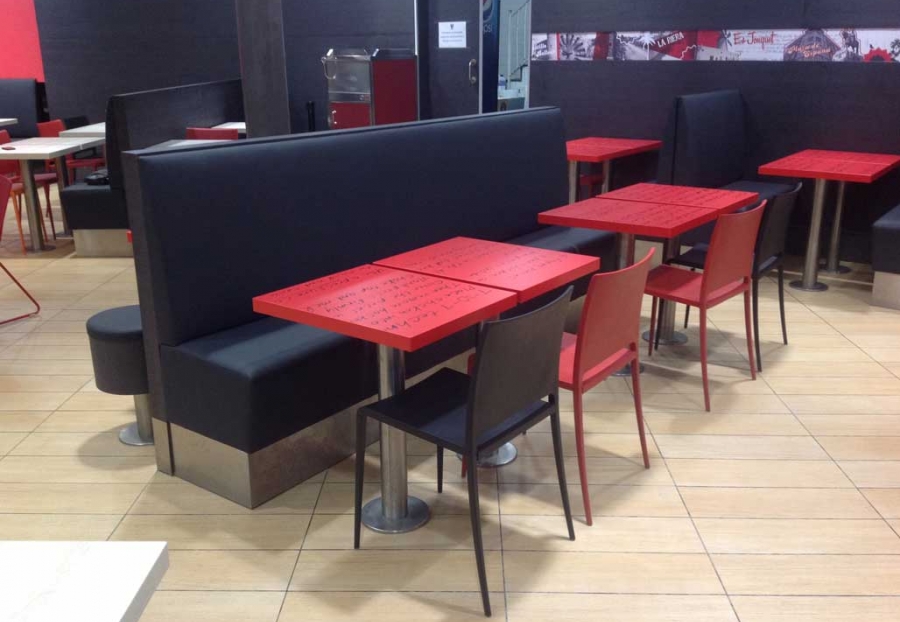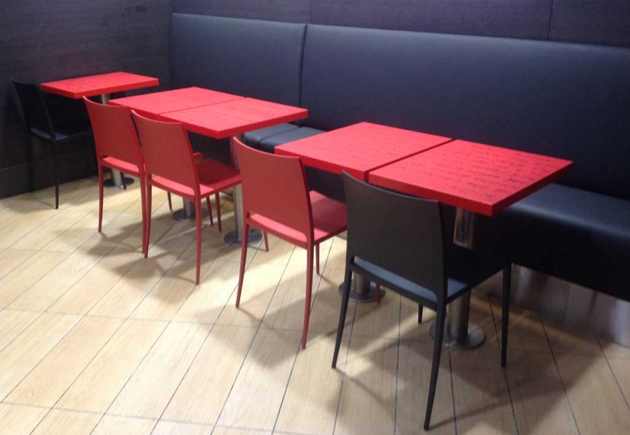 Mesas chapadas con serigrafía.
