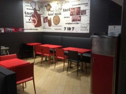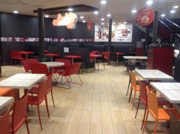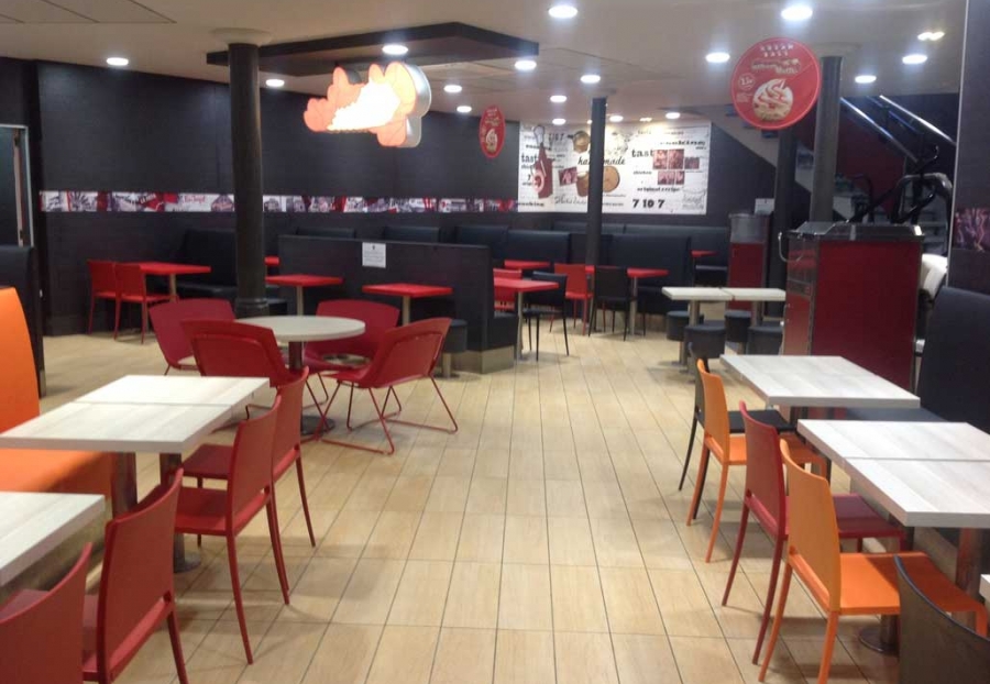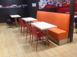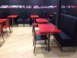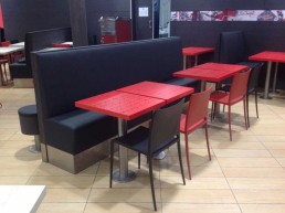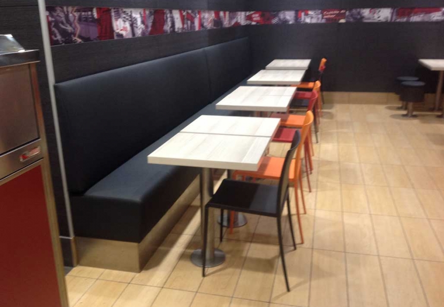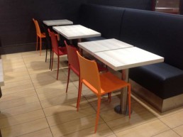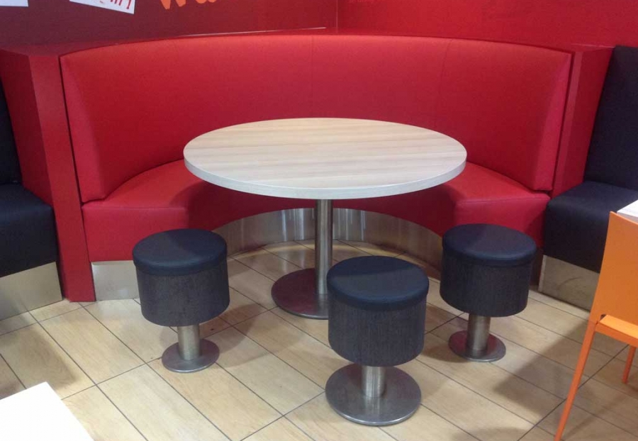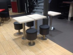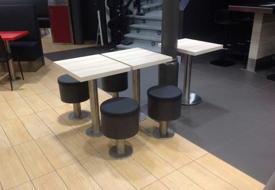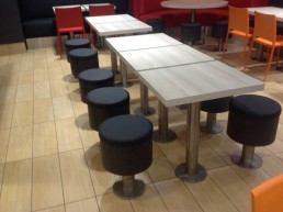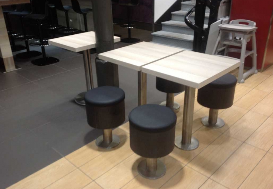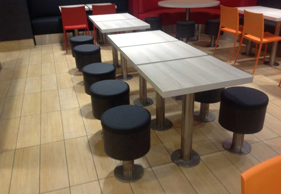 Taburetes anclados al suelo.