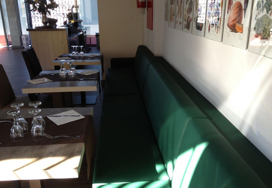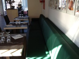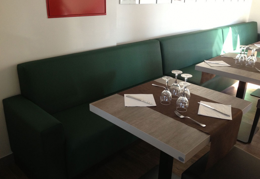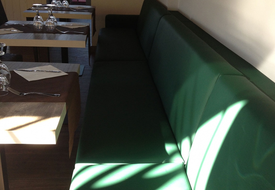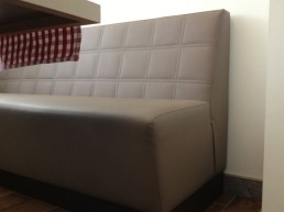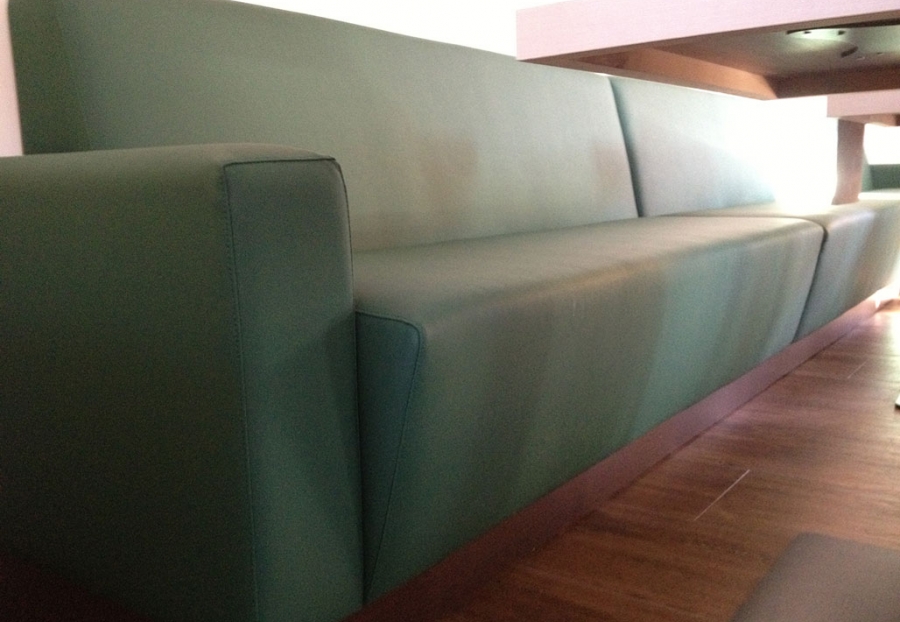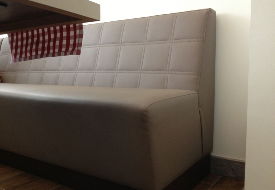 Una bancada personalizada a gusto de nuestro cliente, donde le incorporamos una doble costura en hilo de marroquinería para resaltar el respaldo.