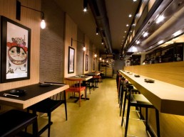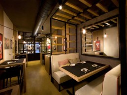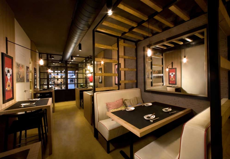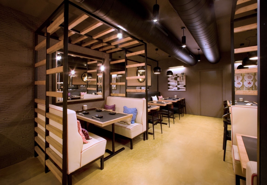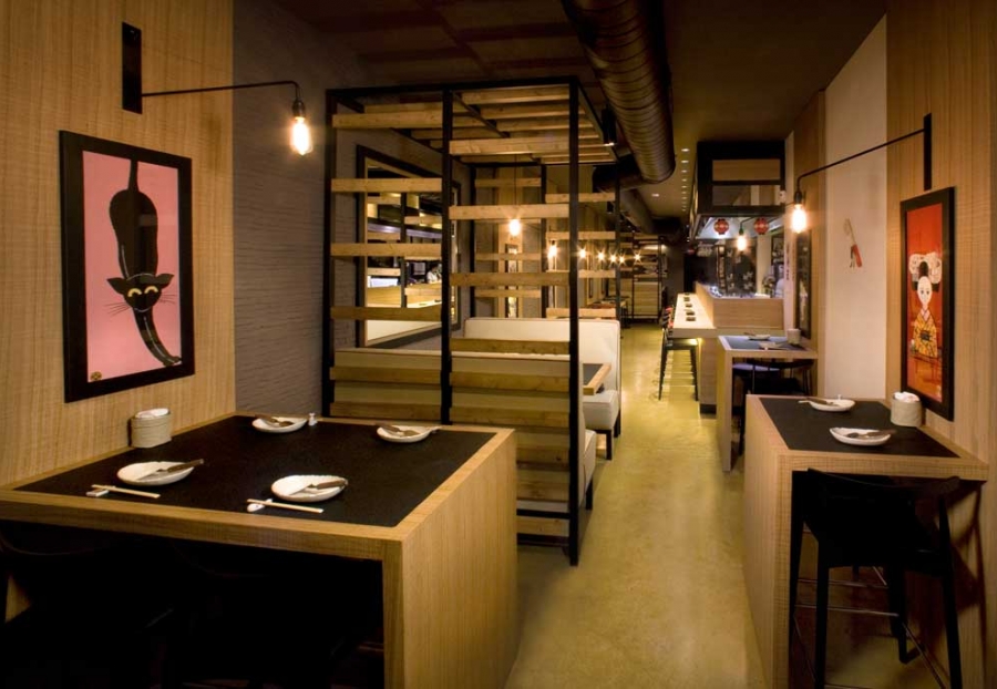 Un Restaurante japonés con auténtico entorno del país ya que que coordinaron tejidos traídos desde en propio país de origen.