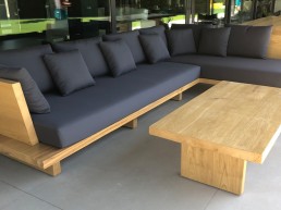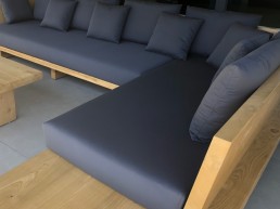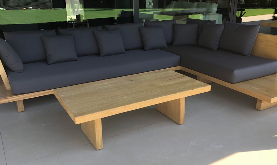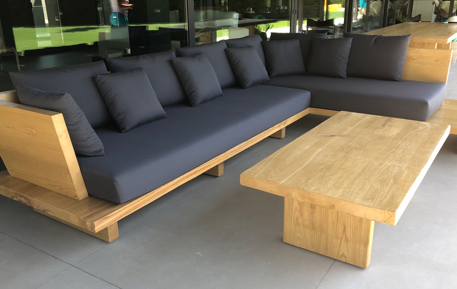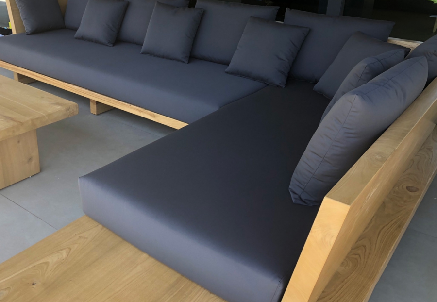 La cojineria fabricada en tejido de exterior de una alta calidad y las calidades interiores hacen esta pieza